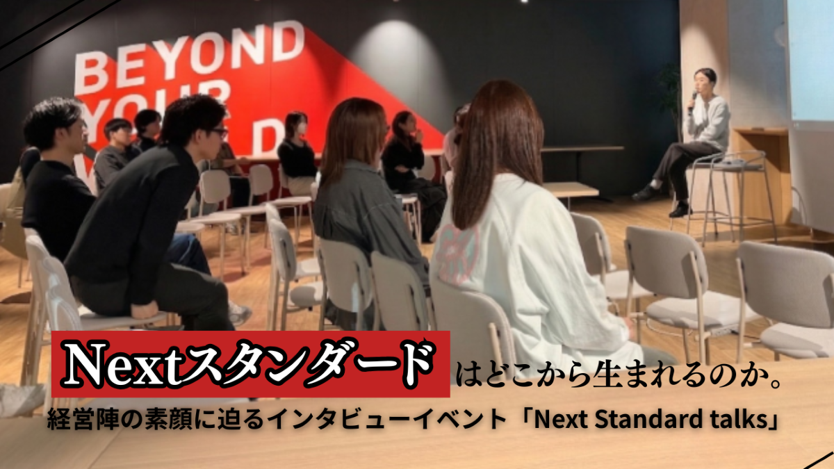 そんな想いから、人事戦略室の新企画として「Next Standard talks」をスタートさせました。ただのインタビューイベントではありません。経営陣という鎧を脱ぎ捨てた彼らの「人間性」や「判断軸」を深掘りし、明日から自分の行動を少し変えられるような、明日へのヒントを盗み出す場所です。