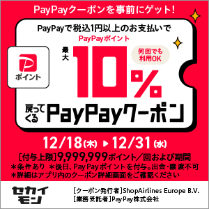 ※2025年12月18日(木)~2025年12月31日(水)は、PayPay支払いでセカイモンクーポンの利用はできません。