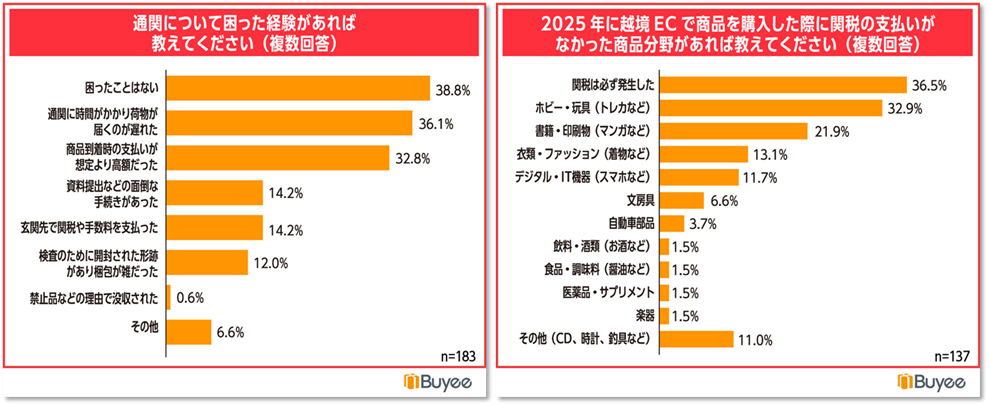 BEENOS株式会社(本社:東京都品川区、代表取締役:直井聖太、以下BEENOS)は、海外向け購入サポートサービス「Buyee(バイイー)」を利用される海外のお客様185名に「越境ECと関税に関する意識調査」を実施しました。