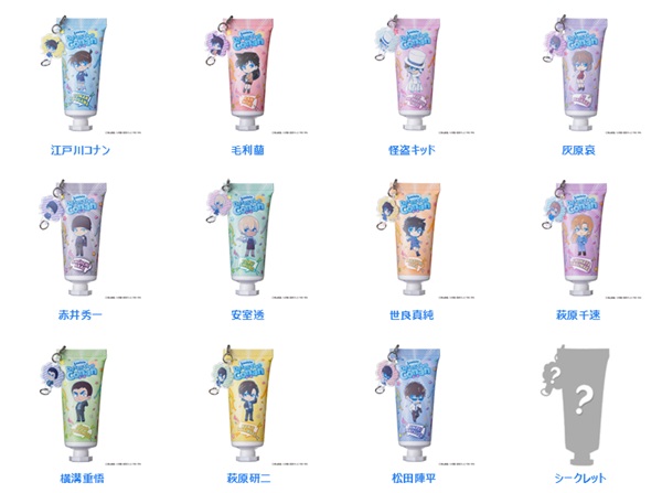 今回発売される新アイテムは、Lovisia初となるブラインドアイテムです。ハンドクリーム、リップクリームそれぞれで江戸川コナン、毛利蘭、怪盗キッド、灰原哀、赤井秀一、安室透の他、劇場版『名探偵コナン ハイウェイの堕天使』にも登場する萩原千速、横溝重悟、世良真純、萩原研二、松田陣平11キャラクターとシークレットが加わった全12アイテムが展開されます。